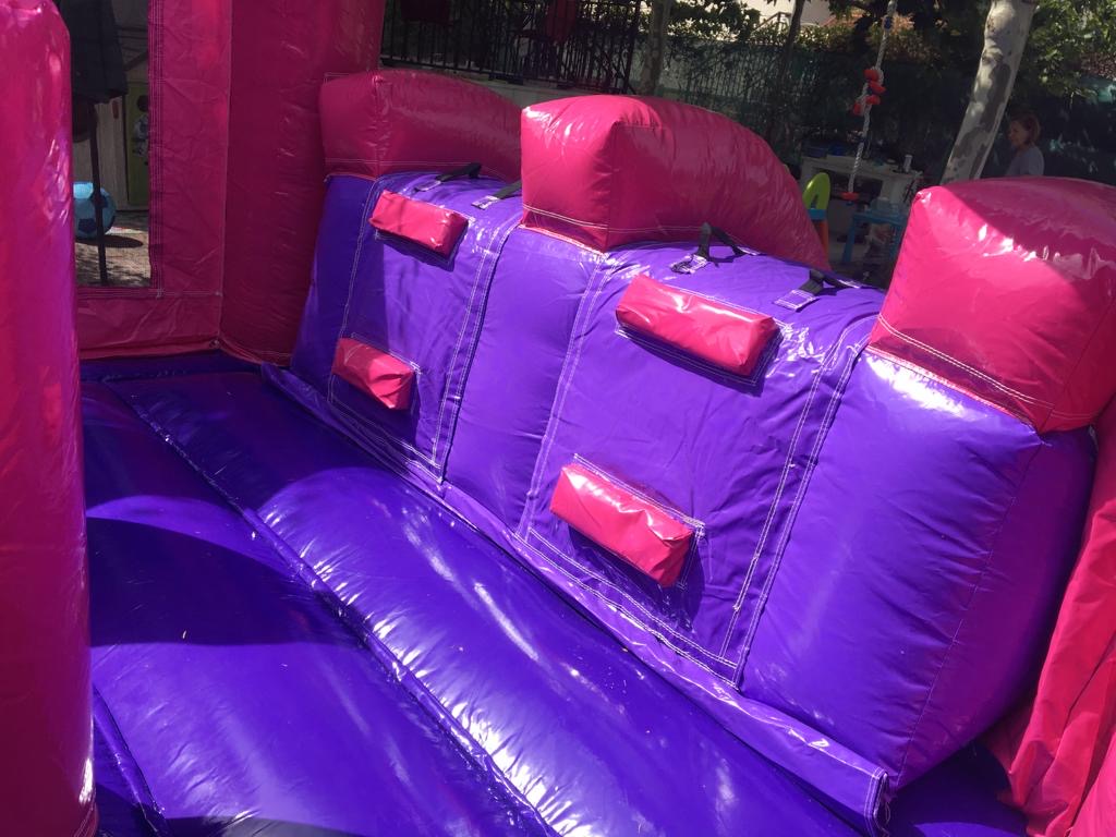 Castillo Hinchable Alquiler Doble Tobogán Rosa: